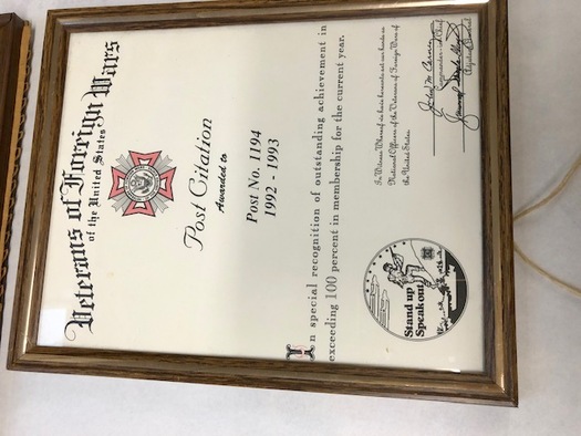 An award given to Roy D. Graves Post #1194 for exceeding 100% membership between 1992 and 1993.
