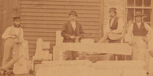 Thomas Woods (standing, third from right) established this grocery in 1897. It was located at 13 Main Street, remained in business into the 1940s, and was a source of supplies for local hunters.